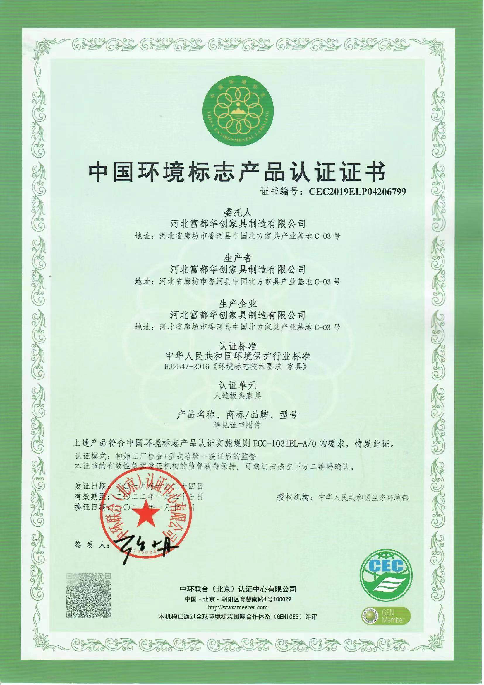 中国环境标志产品认证证书有效期  :   CEC2019ELP04206799